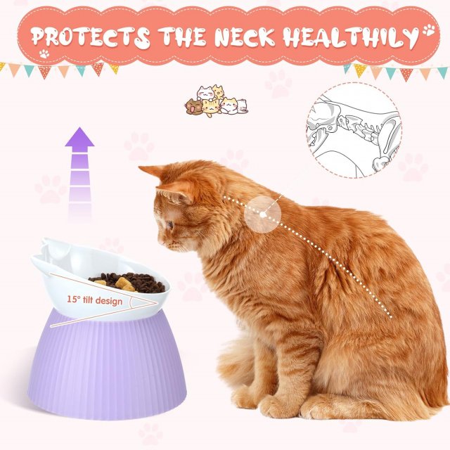 Elevated Tilted Cat Bowl with Raised Neck-Guard Stand