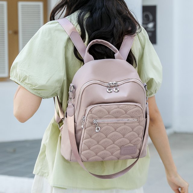 This stylish women’s daypack is designed for real life. From busy college days to weekend trips and casual city walks, it gives you the space you need without feeling bulky. Made from top-quality waterproof nylon, it keeps your essentials safe from light rain and everyday wear. The clean geometric pattern and subtle embroidered details add a modern, fashionable touch that fits perfectly with casual, preppy, or Korean-inspired outfits.