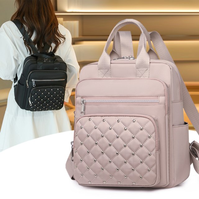 This lightweight women’s daypack is designed for modern life on the go. Made from high-quality waterproof nylon, it keeps your essentials safe and dry while giving you a clean, stylish look. The subtle plaid pattern and chic rivet decoration add a fashionable touch without feeling overdone, making it perfect for casual, preppy, or Korean-inspired outfits.